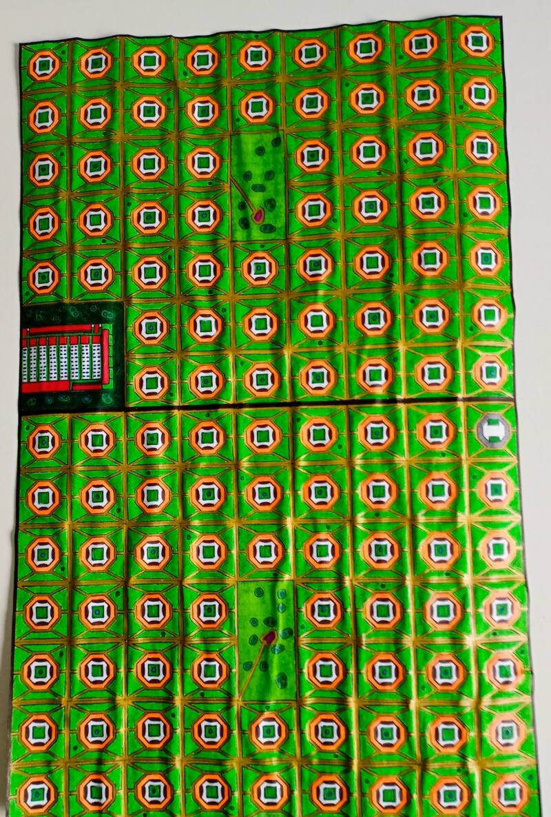 Sector 4/2/B1/Nebadon Park. This arkwork depicts a Strategic section at the City. The composition stands out with its vibrant emeral green background, crossed by a geometric grid that organizes the centers of power and knowledge of this Local Universe of Nebadon.
